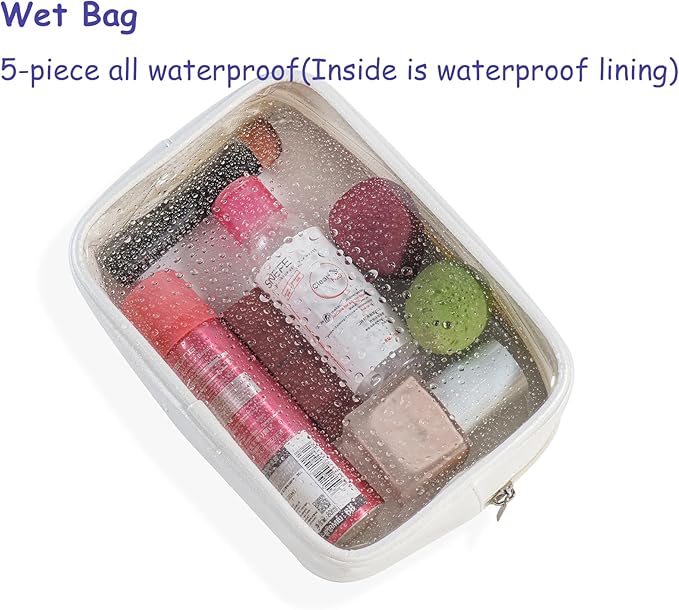 TSA Approved 5-Piece Diaper Bag Organizer Pouch Set Clear Waterproof TPU Kids Toiletry Storage Set Travel Packing Clutch Cube Bags for Baby Nursing