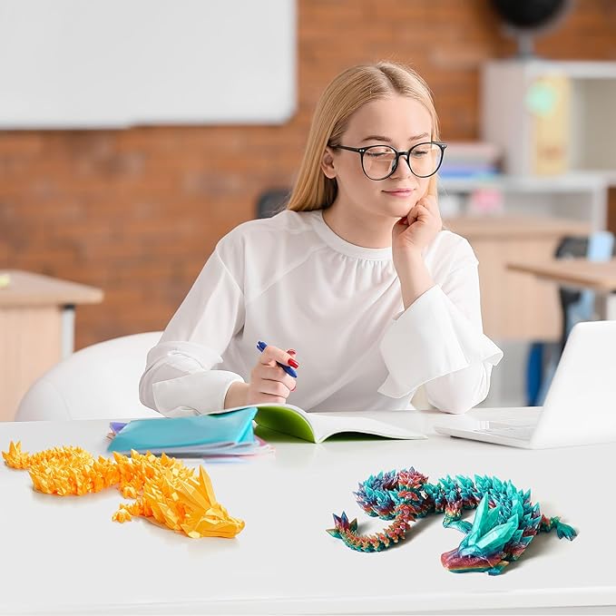 - Versatile, Fun, and Stress-Relieving: This dragon fidget toy is not just for display—it’s designed for imaginative play and relaxation. The dragon’s articulated joints allow for various poses, making it a fun desk companion or stress-reliever. Fidget with it while working or studying to spark your creativity. Its eye-catching size makes it the perfect addition to any desk or space, adding imaginative and inspirational. (Package Included: 1 * 30-inch 3D printed dragon )