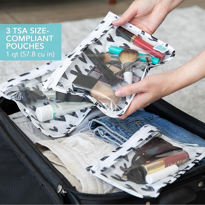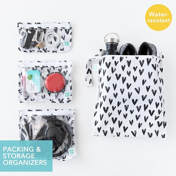 Bumkins - Waterproof Wet Bag & Clear Travel Bags - For Beach, Baby, Travel, Swim Suit, Cloth Diapers, Pump Parts, Pool, Gym, Toiletries - Reusable & Easy to Clean - Black Hearts - 4 Pack