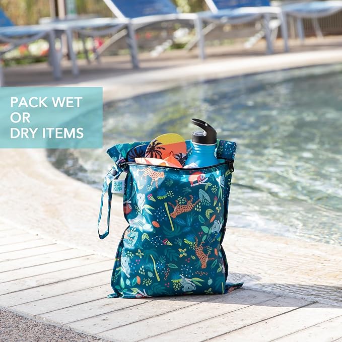 - VERSATILE & REUSABLE - More than just a wet bag—use it as a travel pouch, toy organizer, toiletries holder, or even a shoe bag. The snap handle lets you easily attach it to strollers, luggage, or hooks for on-the-go convenience. Bumkins’ Wet and Wet/Dry Bags offer a reusable alternative made from durable, long-lasting materials that support your lifestyle.