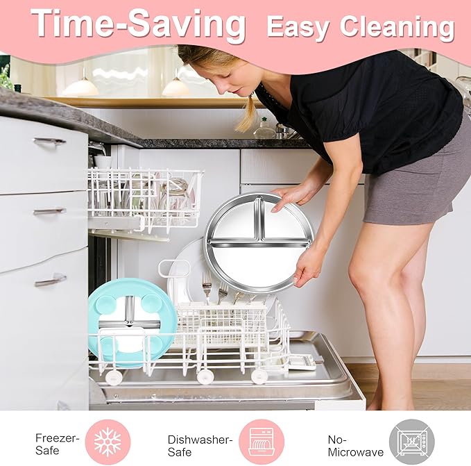 - Clean Taste with Safe Materials: Unlike all-silicone plates that sometimes leave a soapy taste, this food-grade, BPA-free and lead-free stainless steel plate won't hold the flavor of the dishwashing pod or liquid soap, keeping food tasting fresh