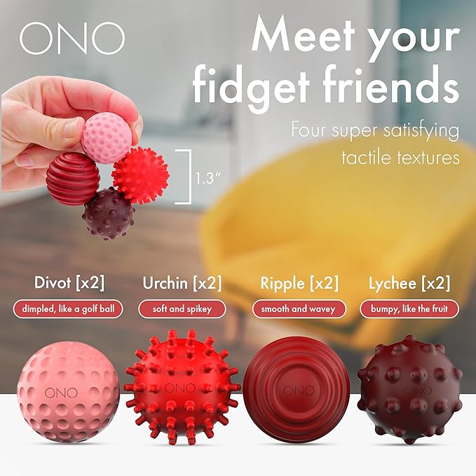 - Sensory Textures For Tactile Stimulation - They're silicone-coated, completely silent, and they come in 4 touch-worthy textures that melt away stress and worries.
