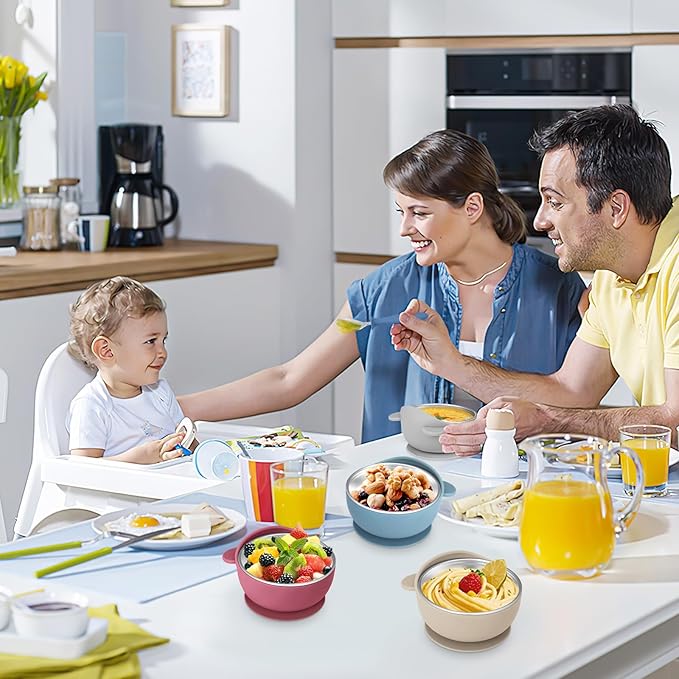 - Powerful Suction Grip: The silicone base holds firmly on tables, trays, or any flat surface, effectively preventing spills and slips. The dual-handle design offers easy lifting and mobility, making mealtime stress-free for parents.