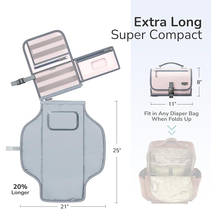 Portable Diaper Changing Pad with Shoulder Strap, Detachable Travel Changing Pad with Baby Wipes Pocket, Gifts for Baby Shower, Newborn Girls and Boys (Pink)