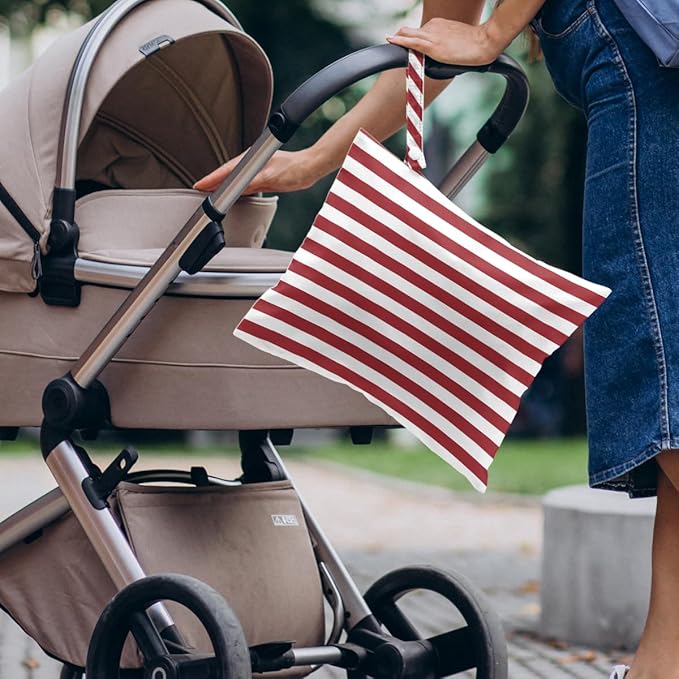4 Pack Cute Striped Cherry Wet Bag Waterproof Washable Reusable Wet Dry Bag for Swimsuit Bathing Dirty Clothes Pump Parts Cloth Diaper Travel Beach Pool Yoga Gym Toiletries Travel Beach Essentials