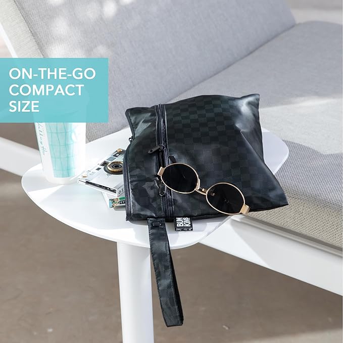 Bumkins - Waterproof Wet Bag, Wet/Dry Clutch & Clear Travel Bags - For Beach, Baby, Travel, Cloth Diapers, Pump Parts, Pool, Gym, Toiletries - Reusable & Easy to Clean - Black Check - 5 Pack