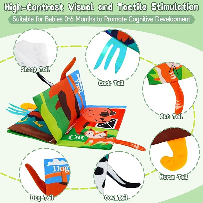 - 【Multi-Texture Animal Tails】Explore 6+ unique textures on detachable animal tails (faux fur, ribbed fabric, smooth silicone) to spark tactile discovery and fine motor development. Each tail is securely stitched to resist pulling, encouraging safe grab-and-pull play. Ideal for sensory toys for babies to learn cause-effect relationships through touch and sound.
