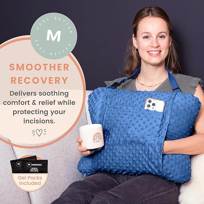 - YOUR RECOVERY BUDDY - Keep your incisions supported and safe from kids, pets, & seatbelts with this stomach pillow after surgery. Embrace the cozy, huggable feel when you slip your hands into the muff design.