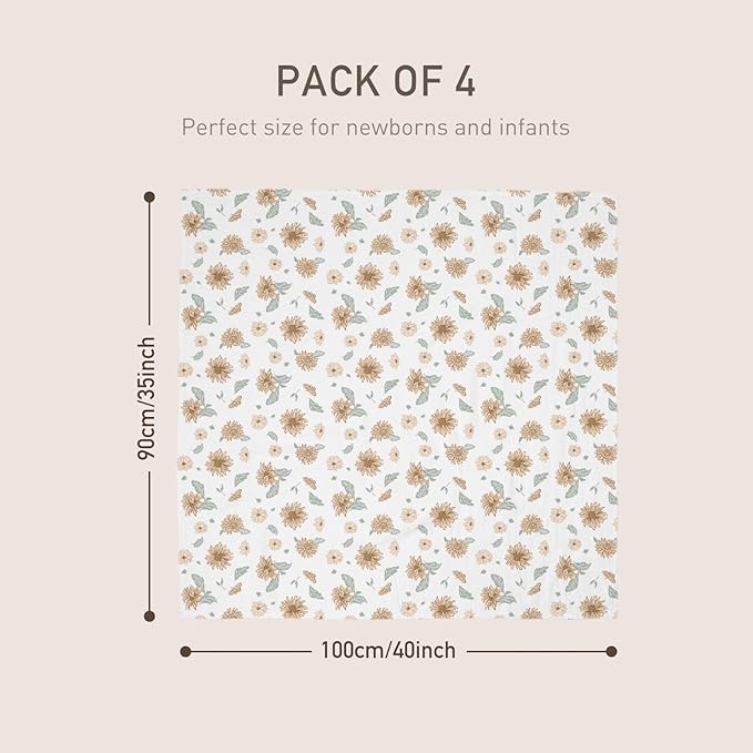 GLLQUEN BABY Muslin Swaddle Blankets 4-Pack Breathable Receiving Blankets (35" x 40") Soft Baby Blankets for Girls and Boys Newborn Essentials Muslin Burp Cloths Swaddle Wrap Baby Gift(Sunflower)