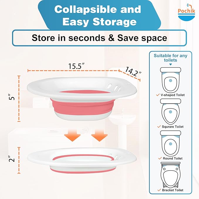 Pochik Sitz Bath for Toilet Seat, Sitz Baths for Hemorrhoids and Postpartum Care, Yoni Steam Seat, Collapsible Basin for Epsom Salt Soak, Sits Bath Kit for Women - Magenta