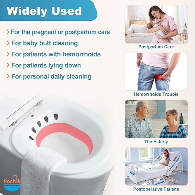 - Enjoy the Ultimate Ease - Pochik upgraded WIDER SEATING AREA fits your hips better for a more comfortable and safe sitz bath experience. Deeper Bowl holds more water, you can enjoy a soothing sitz bath longer.