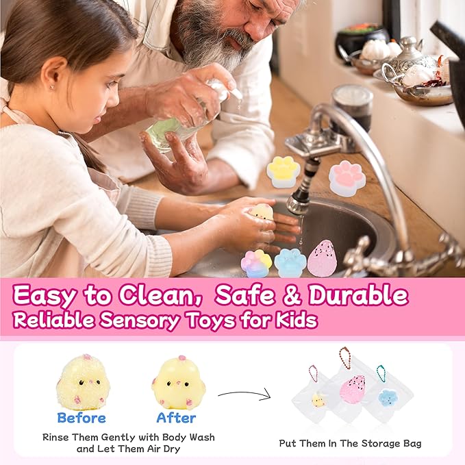 - 【Sensory Toys for Kids with Autism】Whether you need a Squishy Stress Relief toy, or just want to relax , these small cute Taba squishy sensory toys are perfect for you and your kids as a funny autism sensory products.By pulling, pressing, and poking them, you can enjoy the pleasure and relaxation of your hands and mind, perfect squishy sensory toys for kids 5-7, especially for children with ADD and ADHD.