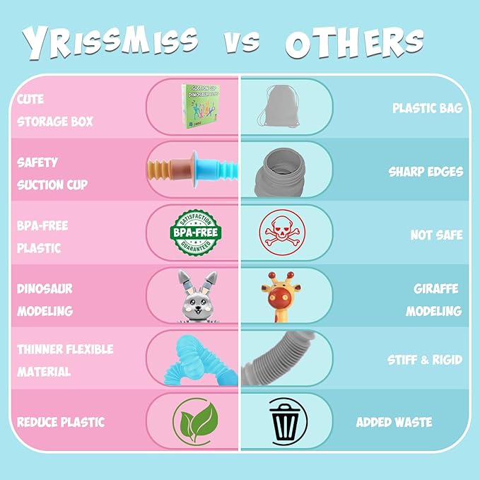 - Imaginative Creative Toys:Its bright colors and adorable shape are sure to capture toddler’s attention.Connecting Games Pop, Crinkle, Pull, Stretch! Create shapes, posture, its flexible tube and suction cup design allow for endless possibilities