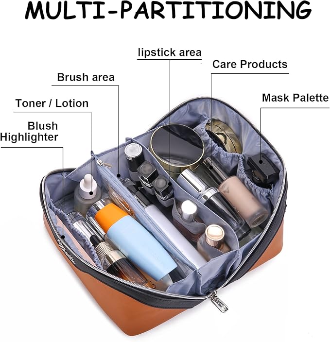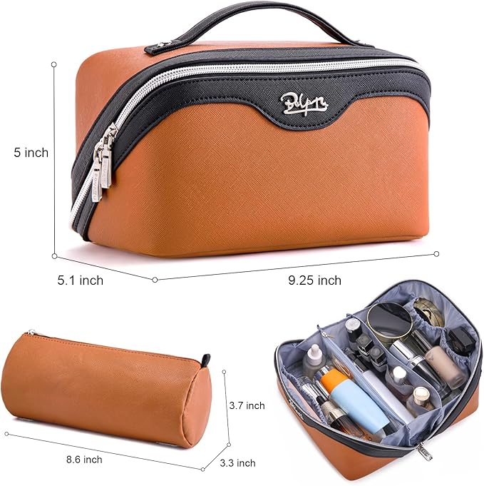 - Waterproof Leather Travel Make up Bags for Women: This makeup travel bag is made of high-quality Vegan leather, soft to the touch, waterproof and easy to clean, not easy to fade. Stain-resistant material stays flawless for years, not months.