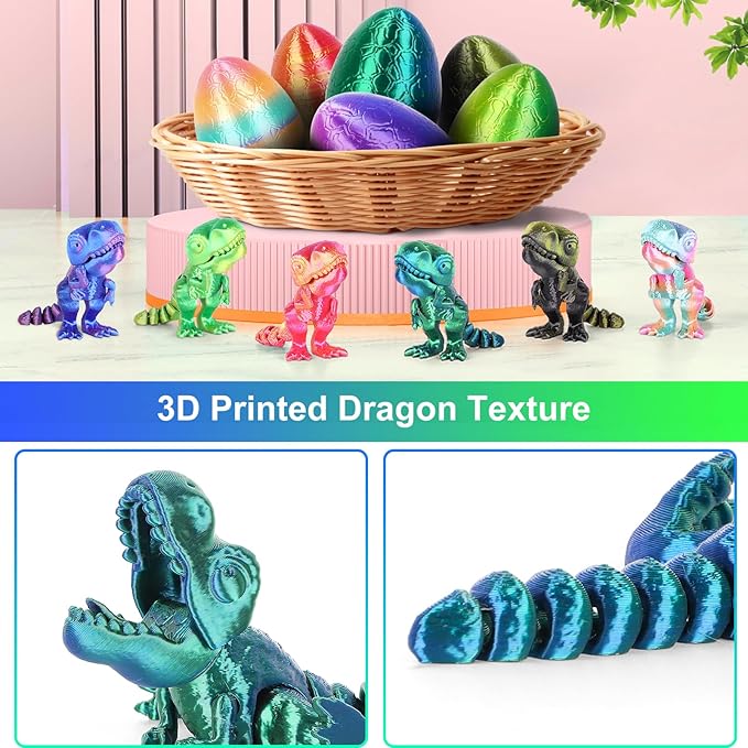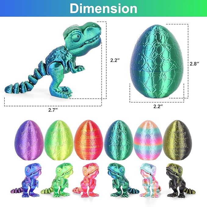 - 【6PCS Creative Toy Gifts】This set of creative toy gifts includes 6 mini 3D printed Dinosaur eggs in different colors. This Dinosaur dragon egg suit is made of child friendly high-quality plastic. The 3d printed dinosaur eggs with dinosaur inside reflects the characteristics of creative and fashionable toys, providing novelty and entertainment. It also represents a unique gift choice, suitable as a gift for friends and family, expressing blessings and care.