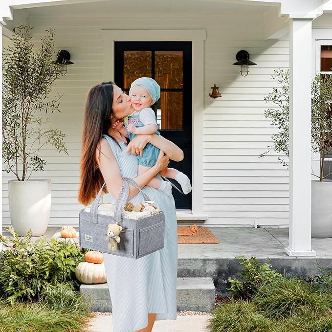 - LIGHTWEIGHT & MULTI-PURPOSE: This baby diaper caddy organizer with handle is perfect for nursery storage, car caddy, or bedside diaper changing station. Store diapers, wipes, breast pump, baby bath items, or toys—ideal for travel and everyday use as baby room organizer and storage