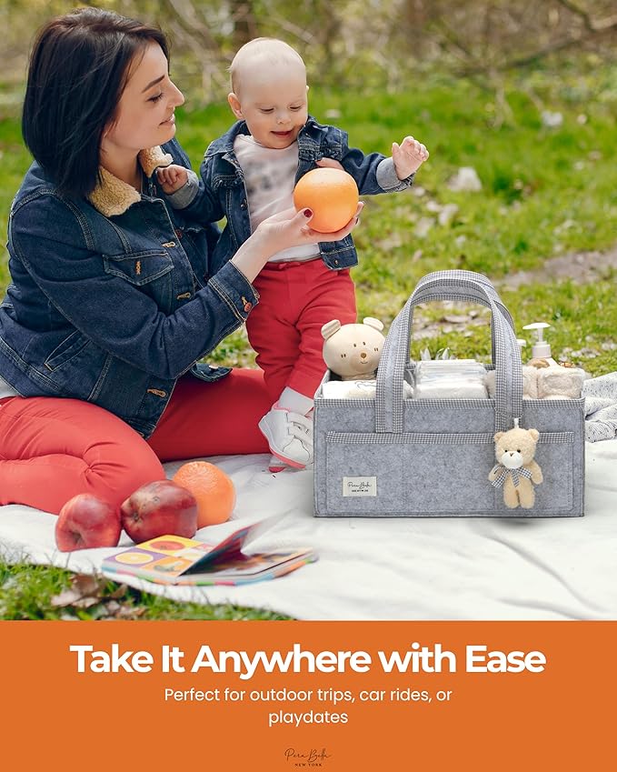 - Special Feature : Ample Storage Pockets – The caddy features multiple outer pockets that are perfect for organizing smaller essentials like baby lotion, wipes, brushes, bibs, and pacifiers., Durable Felt Material – Made from thick, high-quality felt that holds its shape and provides long-lasting use without sagging., Lightweight & Travel-Friendly – Despite its size and capacity, the caddy is lightweight and easy to transport—ideal for everyday use or travel., Multi-Purpose Functionality – Can be used as a diaper caddy, car organizer, breast pump storage, or nursery basket. It's also a thoughtful and practical gift for new moms or moms-to-be., Reinforced Carry Handles – Strong, well-stitched handles make it easy to move around the house or take on the go, whether you're using it at home or in the car. Ample Storage Pockets – The caddy features multiple outer pockets that are perfect for organizing smaller essentials like baby lotion, wipes, brushes, bibs, and pacifiers., Durable Felt Material – Made f… See more