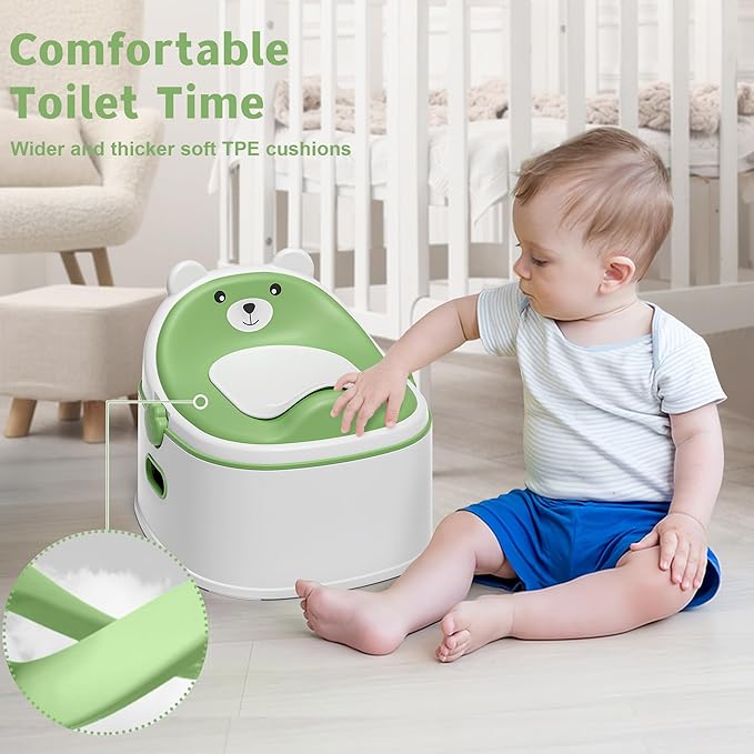 - 【Bear-Styled Potty: Safe & Stable】This 3-in-1 baby potty is suitable for children aged 6 months to 6 years old. Its cute bear-themed design even turns potty training into a fun activity. Made of BPA-free food-grade PP material, it is non-toxic and durable. With polished rounded edges and widened surfaces, it prevents slips and scratches, and is compatible with most standard toilets.