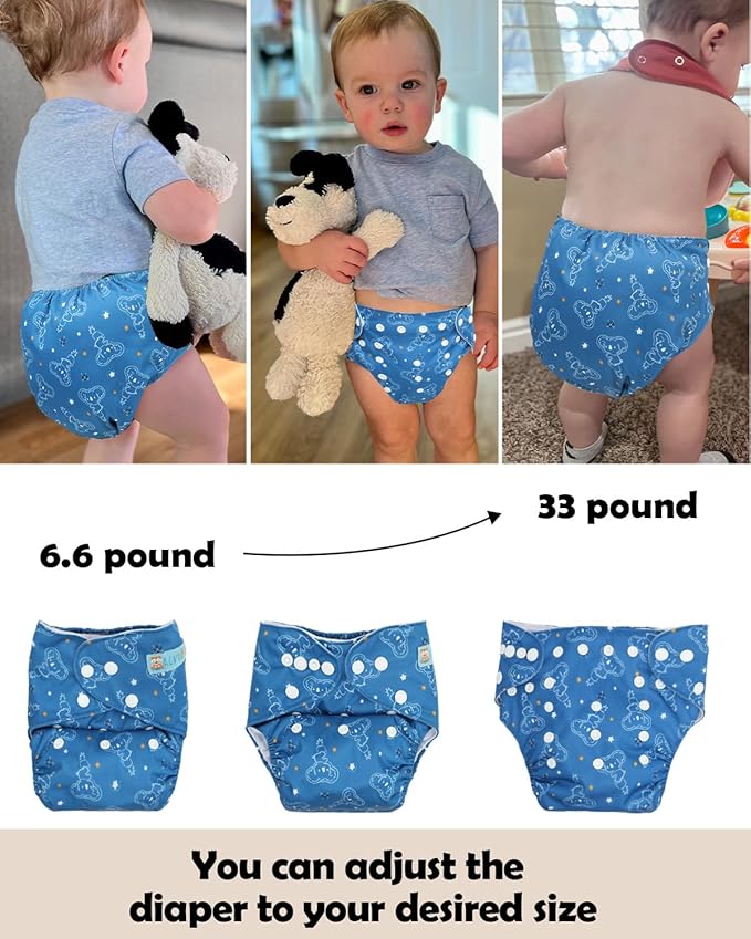 - High Quality, Adjustable, Reusable & Waterproof : Waterproof & breathable TPU outer + moisture-wicking suede cloth inner. Includes two 3-layer inserts (13.7”x5.5”) per diaper. Perfect for active parents.