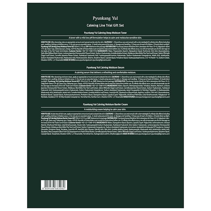 Pyunkang Yul PKY Calming Trial Gift Set Instantly Calms Sensitive Skin, Exfoliating Toner, Soothing Serum, and Facial Skin Hydrating Cream, Vegan, Korean Skincare (3-item set)