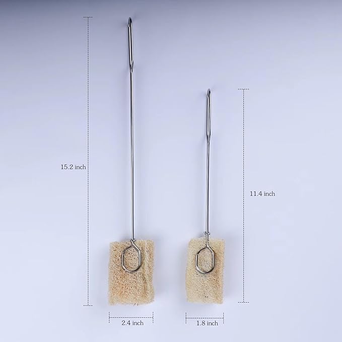 Stainless Steel Bottle Brush Set with Loofah Head, Long and Short Handle, 15.2 and 11.4 Inch, Removable Cleaning Brush for Home, Commercial Use