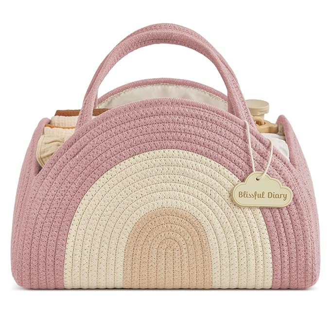 Blissful Diary Baby Diaper Caddy Organizer, Cotton Rope Diaper Caddy Basket, Large Storage Basket for Newborn Boys and Girls, Gift for Baby Shower List, Newborn Essentials, Blush Rainbow