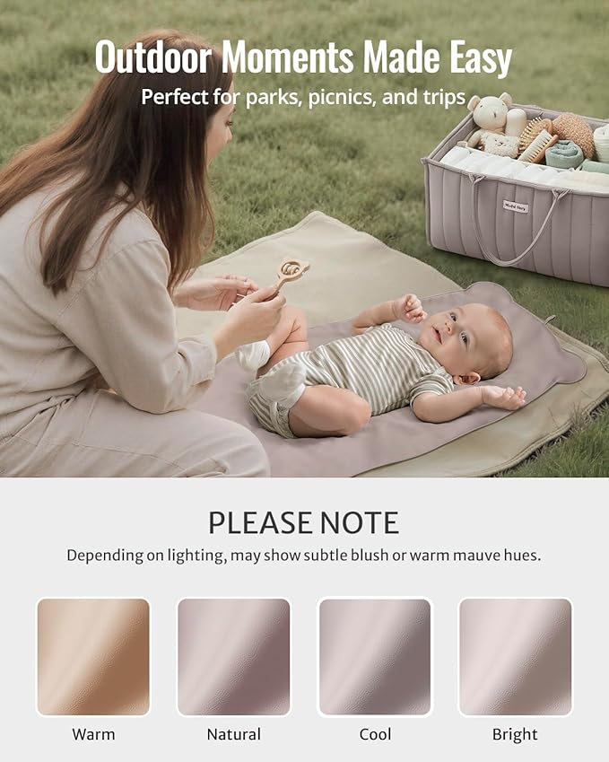 - Lightweight & Foldable for Every Scene – Measuring 30×16'', this thin design folds to fit any diaper bag. Ideal for quick changes in the car, outdoors, travel, or public spaces, and just as handy at home on the floor or with a changing pad.