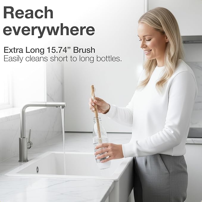 - ✅ 𝗥𝗘𝗔𝗖𝗛 𝗧𝗢 𝗧𝗛𝗘 𝗕𝗢𝗧𝗧𝗢𝗠 - Extra-Long Reach – 40 cm Longer than standard brushes. Cleans tall bottles, baby bottles, vases, and tumblers with ease.