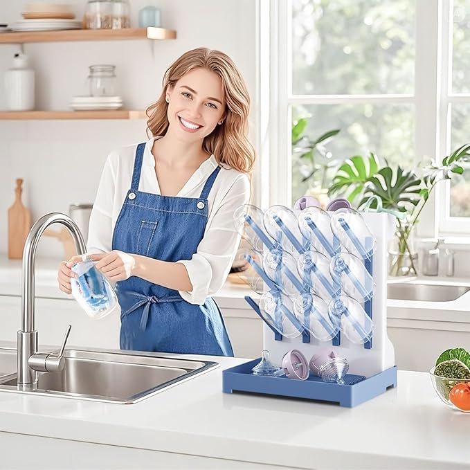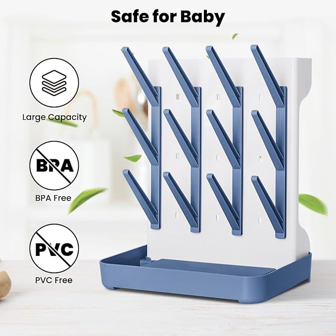 - Easy to Assemble & Clean: Our baby drying rack can Install in 3 simple steps. The adjusted density of branches can be to flexibly adapt to the needs of different childcare periods. Removable drain tray, anti-water accumulation design, water of the bottles flows into the slots under the rack, making it easy to keep the vertical bottle drying rack clean and can be wiped with kitchen paper. Dishwasher-safe.