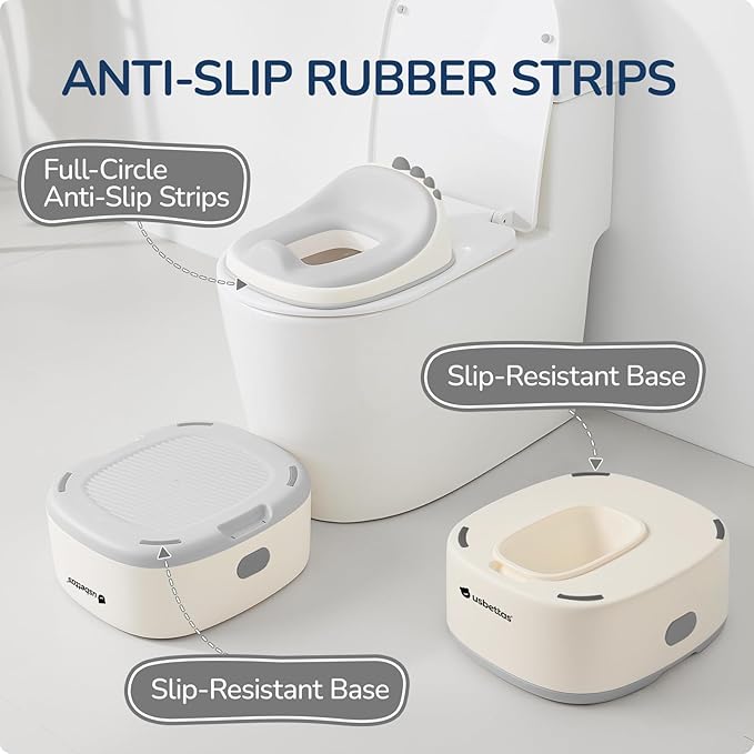 - COMFORT AND SAFETY: The soft seat of the baby potty is made of TPE material, which fits the curve of the child's hips and is more comfortable. The bottom is designed with non-slip rubber strips to make the toddler potty more stable and safe.
