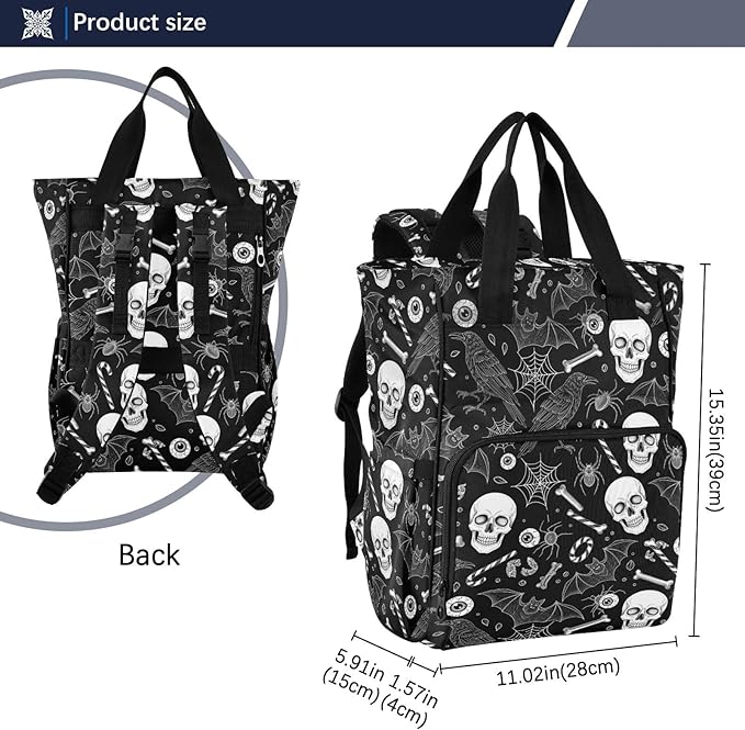 Emelivor Skull Spider Bones Diaper Bag Backpack Large Capacity with Insulated Pockets Baby Bag Diaper Bags for Boy Girl Travel Mom Women Men