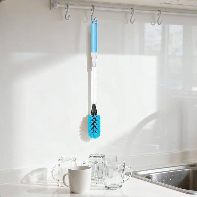- 15-inch Deep-Reach Cleaning: Extended handle design penetrates deep into bottles and jars, effortlessly covering every corner of tall/narrow containers. Eliminates bottom residue and achieves 360° thorough cleaning—no more unreachable spots!