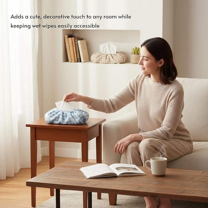 Baby Wipes Cover – Universal Size, One Size Fits All Wipes Packages | Muslin Cotton Tissue Cover for Nursery, Diaper Bag & Changing Table, Station | Gingham & Neutral Patterns (3-Gingham Blue)