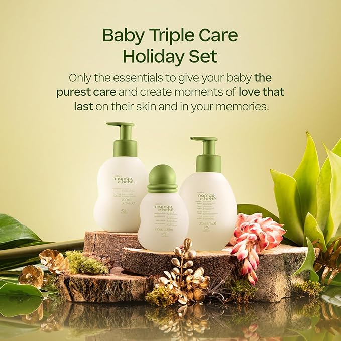 Natura – Mom & Baby Triple Care Set – Brazilian, Vegan, Hypoallergenic & Dermatologist Tested – Moisturizer, Cleanser & Cologne – Mom & Baby Bath & Body Essentials
