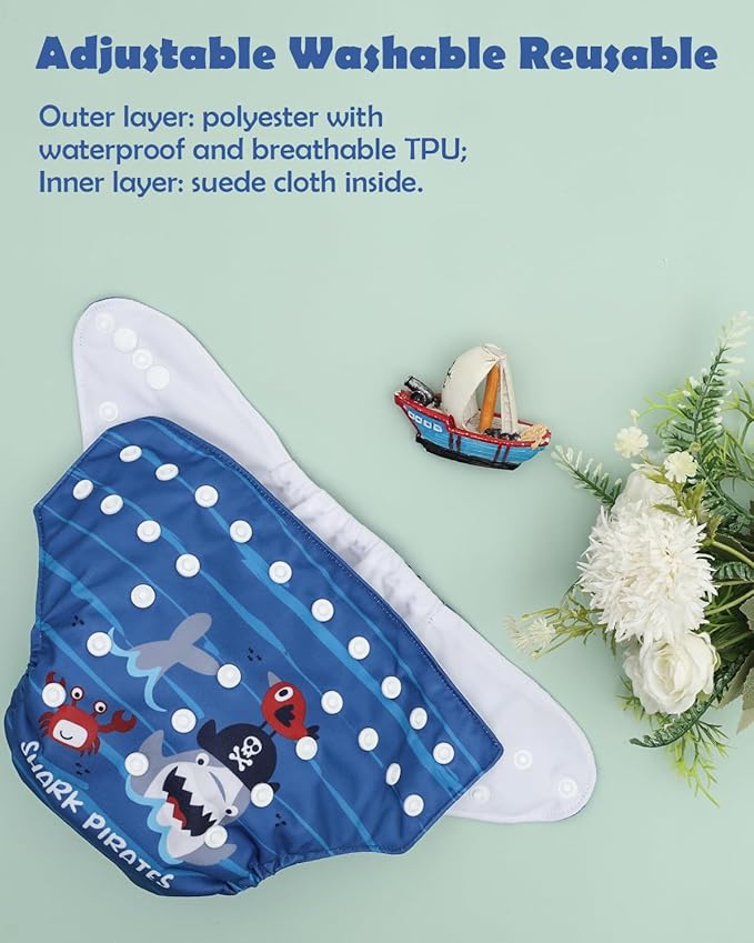 - High Quality, Adjustable, Reusable & Waterproof : Waterproof & breathable TPU outer + moisture-wicking suede cloth inner. Includes two 3-layer inserts (13.7”x5.5”) per diaper. Perfect for active parents.