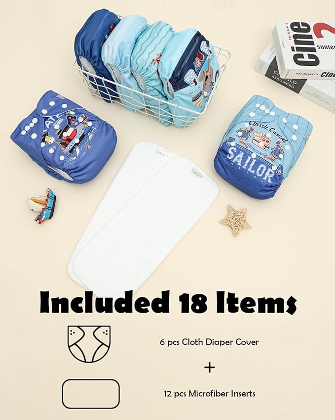 - Packing List: 6 diapers + 12 inserts. Complete solution for lasting dryness and comfort.
