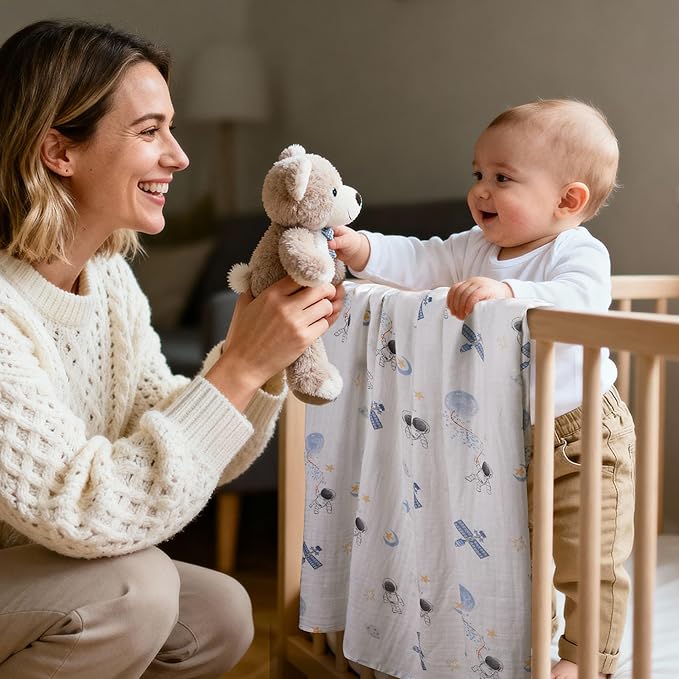 GLLQUEN BABY Muslin Swaddle Blankets Breathable Receiving Blankets (35" x 40") 2-Pack Soft Baby Blankets for Girls and Boys Newborn Essentials Muslin Burp Cloths Swaddle Wrap Baby Gift(Astronaut)