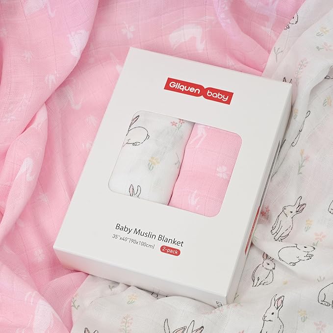 GLLQUEN BABY Muslin Swaddle Blankets Breathable Receiving Blankets (35" x 40") 2-Pack Soft Baby Blankets for Girls and Boys Newborn Essentials Muslin Burp Cloths Swaddle Wrap Gift(Looking for Spring)