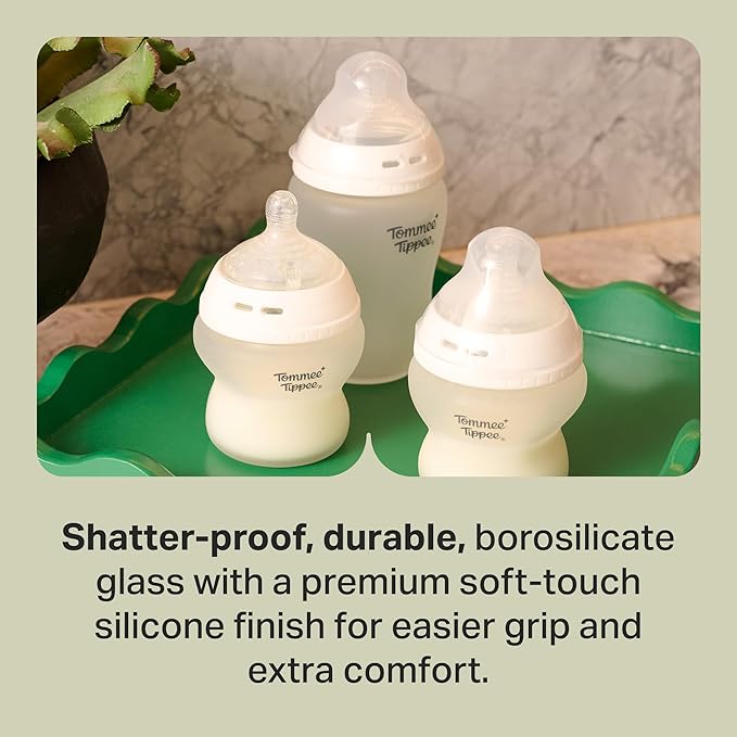Tommee Tippee Natural Start Silicone Coated Glass Baby Bottles for Feeding from Newborn Up, 9oz, 2 Pack
